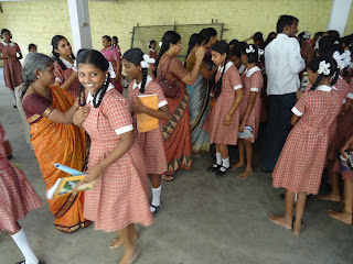 | Students taking blessings from teachers |